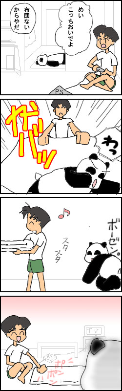 布団を移動する相方。